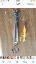 Pilkers met driehaak à 1 euro het stuk zeehengel met molen à 30 euro per stuk weegschaal 0-50 kg à 8 euro kaphaak inox à 10 euro