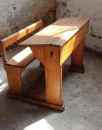 Bureau d'école en bois authentique. Bac à deux places avec couvercles à charnières (pour ranger les livres) et encrier origina