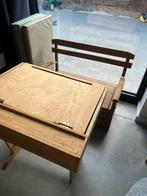 Leuk setje, 2 stuks. Bankje met opbergruimte en bureautje met opbergruimte. Voet onderaan afgebroken, maar is er nog bij, kan hers