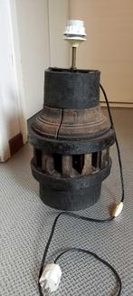 Vintage tafellamp met lederen kap. Hoogte: ±108 cm breedte lampenkap: ± 44 cm de ijzeren ringen zijn los van de naaf maar onderste