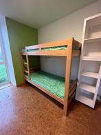 Lit superposé en bois massif et assemblage solide. Format compact grâce à ses matelas de 180x80, convient aux enfants et ados. Mat