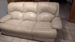 A vendre salon en cuir, 1 divan 2 places avec fonction relax, 1 divan 3 place normal un petit coin discret un peu déchiré ( voir photo) quelques traces d'usures et quelques craquelures 60 euros a