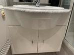 évier avec plan de travail en marbre et armoire avec une planche de séparation.