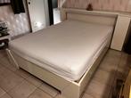 Belle chambre blanche avec matelas kaste possède trois portes coulissantes. Les deux armoires extérieures ont une tringle, l'a