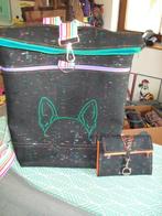 Ensemble artisanale en liège, sac et portefeuille, décor bull terrier, peux ce porter en sac a dos ou en bandoulière, curieux s'abstenir, si annonce visible toujours valable, peut être envoyé a vo