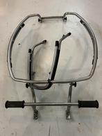 Voor een vespa p of px model. Nog in zeer goede staat (zo goed als nieuw) beugel en voor spatbord beugel super mooie set uniek. Stevig van top kwaliteit chrome met originele rubbers prijs 180,- euro o