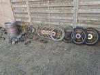 Lot honda camino onderdelen wielen wielranden banden mono boiten cilinderkoppen sturen spatbordbeugels spiegels zadels voor te overtrekken carters custom lichtbeugels en nog een hele bak cilinders voo