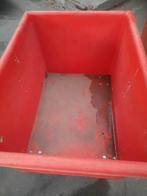 Stevige transportkarren in polyester afm 1m40 op 90cm en 1m hoog, op vier wielen waarvan twee zwenkbaar.. Eventueel met deksel. Id