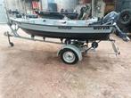 Polyester visboot 3.85M x 1.55M breed , vis klaar. 4Pk viertakt motor + plastieken brandstoftank. Garmin dieptemeter/ visvinder. T