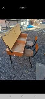 Dubbele schoolbank. Goede staat. Enkel wat stickers aan de binnenzijde maar kan verwijderd worden enkel ophalen in kampenhout