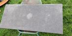 Grote zwarte marmeren tegel die vroeger dienst deed als tegel aan de open haard. Verweerd, maar zonder barsten. 1 Zijde is anders afgewerkt. Mooie aders in het marmer. Zwaar ding