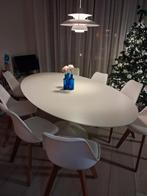 8 witte stoelen met houten poten. Tijdloos design. Hier en daar gebruikssporen.