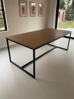 Set van 4 tafels eiken blad behandeld. Eettafel, bijzettafel en 2 salontafel. Onderstellen zijn maatwerk in zwart metaal. Poederlak ral 9005 eettafel 202x102x76 indien gewenst 6 gratis stoelen. Lichte