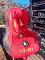 Inclineerbare autostoel in ferrari kleuren: rood -grijs. Te gebruiken voor of achteraan in de auto; instructies op de zijkant. Geschikt voor baby's en kinderen tot 18kgr door de verstelbare gordel