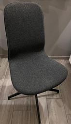 Chaise de bureau en tissu gris foncé. Pieds fixe, tournante, réglable en hauteur et inclinable.
