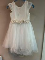 Communiekleed miss leod wit/ecru met bloemenversiering vooraan en strik achteraan . Met tule. Nieuwprijs : €300