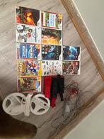📦 inhoud pakket: • nintendo wii console (met alle kabels en sensorbalk) • 2 originele wii-afstandsbedieningen (zwart & rood) • 2 stuurwielen voor racegames • 2 pistool