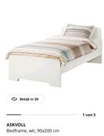 Bedframe ikea askvoll 90x200cm. Is al gedemonteerd. Er is ook een lattenbodem bij van ikea lönset (nieuwprijs 60 euro). Er ontbreekt 1 lat uit de lattenbodem.
