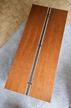 Table basse du milieu du siècle conçue à partir de bois précieux massif. Le design est « aéré » car la table se compose de deux parties égales dans le sens de la longueur, séparées par une bande de bo