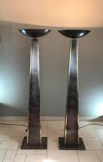 2 large brass torchiere floor lamps from belgochrom. Style: hollywood regency prachtige grootte vloerlampen van belgo chrom in koper en in goede en werkende staat. Periode: 1970's afmetingen: hoog