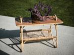 Très jolie table basse avec porte journaux en bambou clair et rotin. Dimension l 86cm l 44cm h 56cm