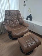 Originele stressless reno relaxfauteuil in maat m, bekend om zijn uitstekende zitcomfort en tijdloze design. De fauteuil is voorzien van het unieke st