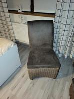 Assise en cuir, bas de chaise en osier. Bon état général, quelques tâches sur le cuir. Cuir brun taupe. Chaises avec roulettes.