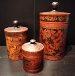 3 vieux pots à tabac rigawerk, 2 très anciens et 1 plus récent (le plus grand) diminuer. Hauteur 32 cm et diamètre 17 cm. Diminuer. Hauteur 21 cm et diamètre 13 cm. Diminuer. Hauteur 15 cm et diamètre