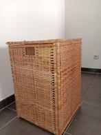 Mooie en nette rieten opbergmand. Met een nieuwe katoenen hoes bij om rond de mand te doen. Afmetingen buitenkant 60 x 40 x 40 cm is altijd gebruikt g
