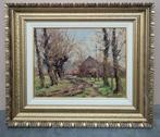 Olieverfschilderij op doek van albert de deken. Landschap met paard in de wei en fietsster verderop. Perfecte staat. Rechts onderaan gesigneerd. Doekmaat: 50 bij 60 cm. Ingelijst: 67 bij 77 cm. Verzen