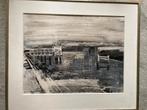 Peinture de rené de coninck peinture avec vue sur le port dans les tons bleu, gris et noir de l'artiste belge rené de coninck (1907 - 1978). Le tableau est signé et daté. Dimensions : h 69, l 81,