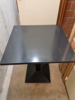 Belle table à manger carrée pouvant accueillir 4 personnes. Le plateau est en bois, le pied en métal. Des bouchons à vis au bas du pied permettent d'équilibrer correctement la table. Je le vends à