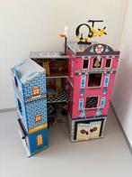 Pompier en bois et poste de police super mignon. Comprend tous les meubles, véhicules et personnages. Légèrement décoloré par le s