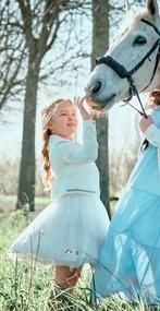 Heel mooi communiekleedje van het merk gymp. Maat 128 mooie details strikjes op de tulle. Veel tulle en rokje staat echt poef. Detail strikjes rond de hals. Rug = diepe insnede. Lichte bruinverkleurin