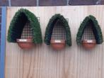 Grands nichoirs de différentes tailles avec un nid en pierre de 13 cm et 16 cm de diamètre, également avec un nid de roseau de 18 cm, prix 22,50 euros