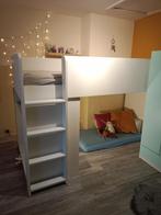Smastad hoogslaper met lattenbodem en onderkast van ikea. Deze hoogslaper is lager gemaakt om te passen in een kamer met lager pla