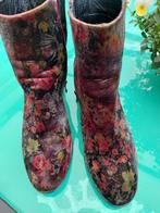 Bottillons femme. Pointure 40. Hauteur 20 cm. Décor velours fleuri. Fermeture zippée. Talons larges 6,5 cm (hauteur moyenne). Excellent état. A enlever région de marche-en-famenne ou envoi possible en