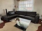 Siège d'angle en cuir avec partie chaise longue en cuir de haute qualité et en parfait état ! La couleur tend vers le noir, le brun très foncé, ce qui rend le look légèrement plus doux qu'une