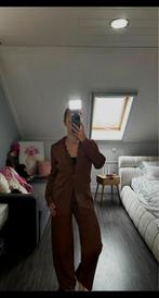 Ce superbe ensemble deux pièces comprend un blazer ajusté et un pantalon large assorti dans une riche teinte marron chocolat : le