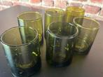 Set van 6 glazen, olijfgroen. Schuin oplopend, hoogte +/- 9 cm zeer mooie glazen laag model. Ook andere modellen beschikbaar.