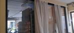 Afmetingen glas: 1.43M h x 2.78M b het raam is donkerbruin pvc: 1.56M h x 2.84M b enkel glas.