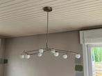 Hanglamp in metaal met lampenkapjes in melkglas. Modern design. Lengte 110 cm x breedte 45 cm x hoogte 90 cm in goede staat. Lampe
