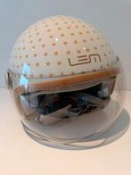 Zeer mooie dames vespahelm, maat s. Helm heeft een windscherm wat op en neer geklapt kan worden en wordt samen met handige draagzak verkocht. De helm is in zeer goede staat!