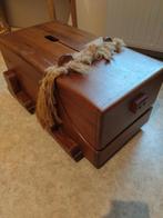 Opbergbak op wielen. Muil kan open. Er zijn twee losse opbergvakken afmetingen l 80 cm h 40 cm b 40 cm met poten 48