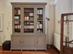 Bibliothèque en deux parties avec corniche amovible, bois de pin massif, verre pelleté, très bon état, toutes les clés complètes. Dimensions : hauteur totale 300 cm, largeur 220 cm, profondeur partie