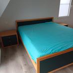Lit pour matelas 2m/1m60, bois avec accent vert foncé. Tables de chevet l 52 cm, p 43 cm, h 45,5 cm, 3 tiroirs. Les sommiers à lattes peuvent être apportés gratuitement. Prise en charge à izegen