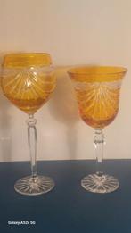 Cristallerie croix de lorraine. Deux magnifiques verres à vin en véritable cristal de lorraine de couleur orange. L'état est parfait sans aucun dommage. Livré avec bpost track & trace, les fra