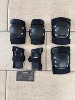 3 delige set skate beschermers voor volwassenen - elleboogbescherming, - kniebescherming, - polsbescherming type sluiting: klittenband en elastische band kleur: zwart maat: medium gewichtsklasse: 50-7