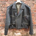 Veste de motard vintage en cuir noir inspirée de la marque perfecto, rendue emblématique par marlon brando dans le film the wild one, sorti en 1953. Taille +/- l.