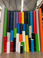Partij rest vinyl folie in diverse kleuren en afmetingen. Ideaal voor belettering, decoratie en andere creatieve projecten. De folie is van goede kwaliteit en geschikt voor zowel binnen- als buitengeb